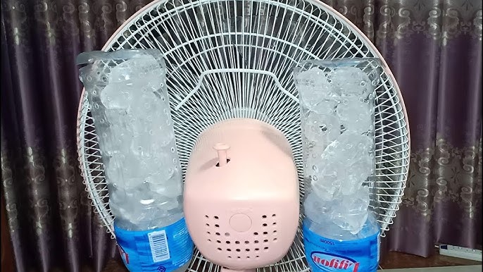 - Position the bowl directly in front of the fan. Make sure it’s placed so the fan’s blades blow directly over the ice and towards you.